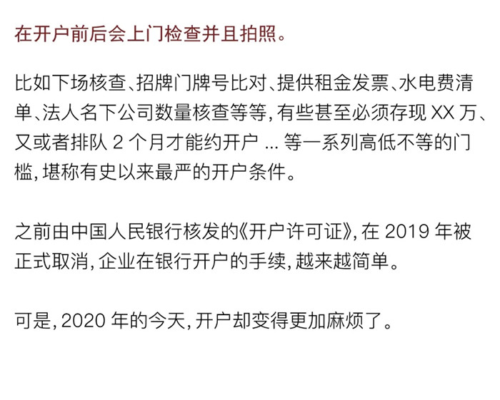 注册公司容易了,银行开户却变难?2020年起,这些行为将被重点监控!